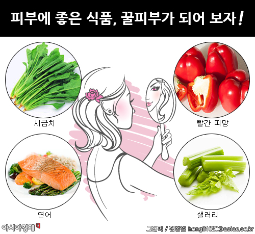 [아시아경제 온라인이슈팀] 피부에 좋은 식품으로 시금치, 빨간 피망, 연어, 샐러리 등이 소개됐다. 미국의 건강·의료 정보 사이트 헬스닷컴은 피부에 좋은 식품으로 시금치, 빨간 피망, 연어, 샐러리 등을 소개했다. 시금치는 영양소가 풍부한 대표적인 음식이다. 시금치에는 철분, 엽산, 엽록소, 마그네슘, 비타민A, 비타민C, 비타민E, 섬유질, 식물성 단백질 등이 풍부해 몸에 다양한 영양소를 충분히 공급해 줄 수 있다. 특히 시금치에 포함된 각종 비타민이 항산화 작용을 해 피부 방어막을 회복시켜주고 피부 톤을 밝게 가꿔준다.