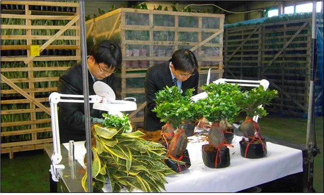 농림축산검역본부 단속반이 수입 묘목에 대해 검역을 실시하고 있다.(사진:농림축산검역본부)