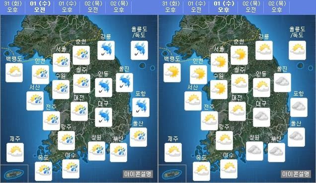 오전날씨(좌) 오후날씨(우). 사진제공=기상청