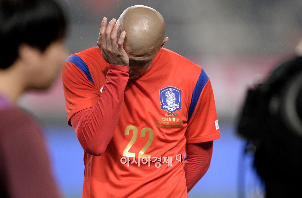 [상암=아시아경제 김현민 기자] 축구 국가대표팀 차두리가 31일 서울월드컵경기장에서 열린 뉴질랜드와의 평가전에서 은퇴식을 갖고 눈물을 흘리고 있다.