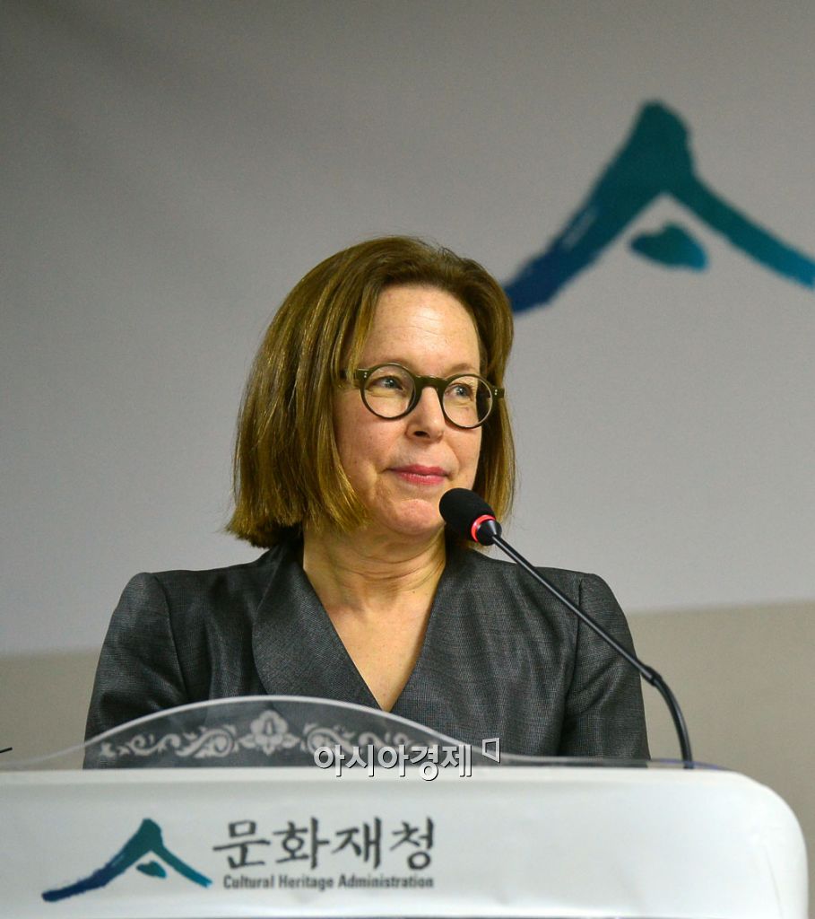 [아시아경제 백소아 기자] 1일 서울 종로구 국립고궁박물관에서 열린 덕종어보 반환식에서 킴멀리 로어샥(Kimerly Rorschach) 미국 시애틀미술관장이 인사말을 하고 있다. 덕종어보는 조선 제9대 임금 성종이 죽은 아버지 덕종을 기려 1471년 온문의경왕(溫文懿敬王)이라는 존호를 올리면서 제작한 것이다. 덕종(1438∼1457)은 세조의 맏아들로 세자로서 20세에 요절해 고양시 경릉에 묻혔다. 그의 어보는 원래 종묘 영녕전 덕종실에 있었다가 유출됐다.백소아 기자 sharp2046@asiae.co.kr<ⓒ세계를 보는 창 경제를 보는 눈, 아시아경제(www.asiae.co.kr) 무단전재 배포금지>