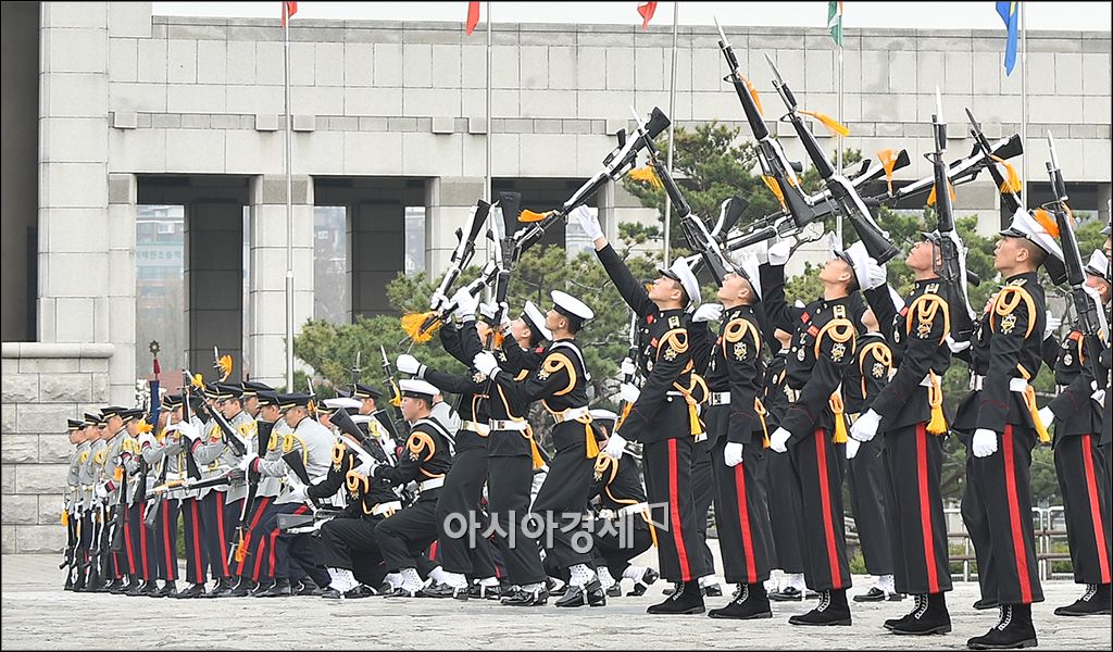 [아시아경제 윤동주 기자] 3일 서울 용산구 전쟁기념관에서 열린 육ㆍ해ㆍ공 3군 통합의장대가 의장시범을 선보이고 있다. 의장 행사는 전쟁기념관 광장에서 매주 금요일, 격주 토요일 2시에 열린다.윤동주 기자 doso7@asiae.co.kr<ⓒ세계를 보는 창 경제를 보는 눈, 아시아경제(www.asiae.co.kr) 무단전재 배포금지>