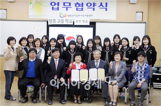 장흥고등학교 훈민정음 동아리(대표 백주희) 학생들은 지난 3일 다문화가족 자녀 12명과 결연을 맺고 학습 지도와 상담 봉사활동을 실시하기로 했다.<br />