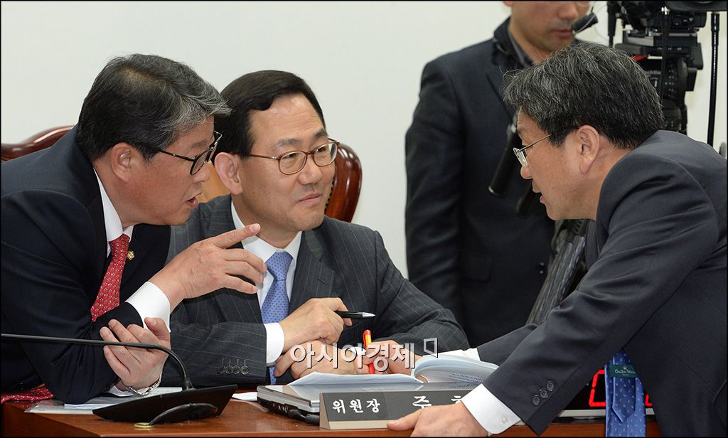 [아시아경제 윤동주 기자] 6일 서울 여의도 국회에서 열린 공무원연금개혁을 위한 국민대타협기구 전체회의에 출석한 주호영 위원장(가운데)이 강기정 야당(왼쪽), 조해진 여당 간사와 이야기를 나누고 있다.윤동주 기자 doso7@asiae.co.kr<ⓒ세계를 보는 창 경제를 보는 눈, 아시아경제(www.asiae.co.kr) 무단전재 배포금지>