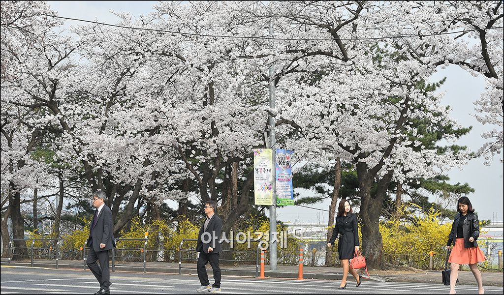 [포토]벚꽃 출근길