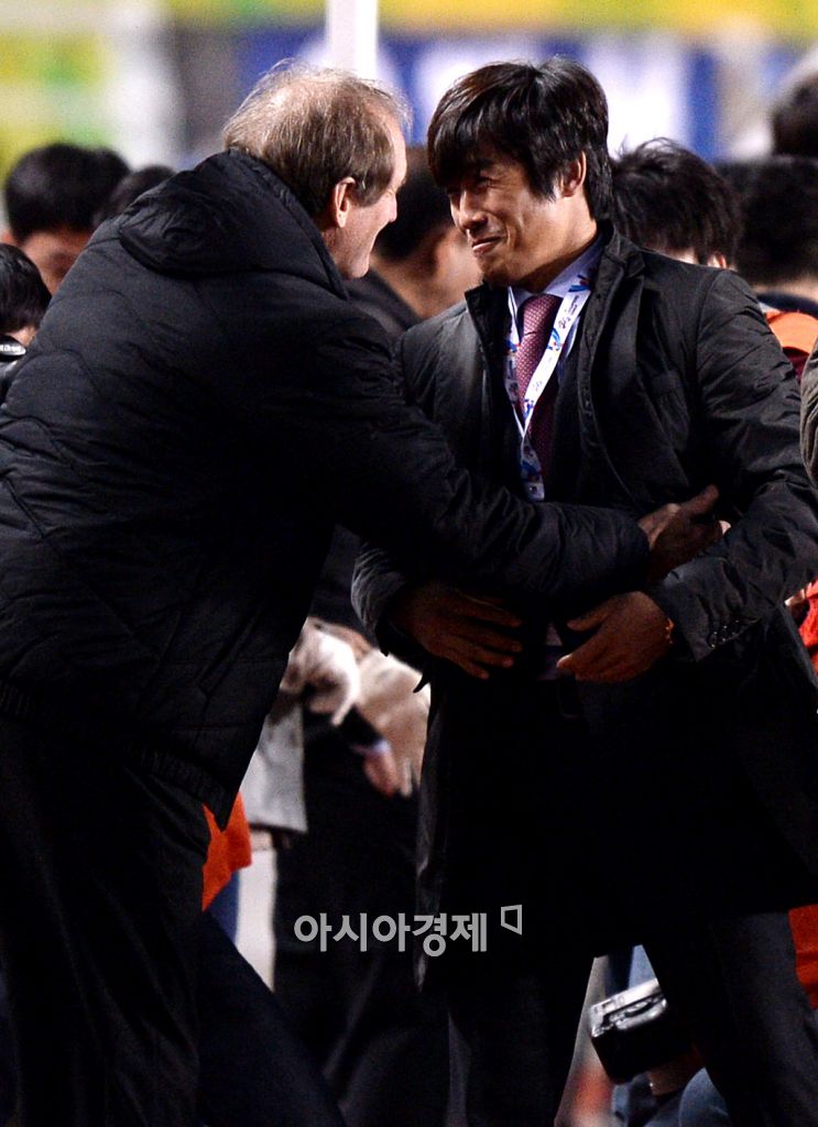 [수원=아시아경제 김현민 기자] 프로축구 수원 삼성이 8일 수원월드컵경기장에서 브리즈번 로어(호주)와 AFC 챔피언스리그 조별리그 G조 4차전을 했다. 경기에 앞서 수원 서정원 감독이 브리즈번 프란스 티센 감독과 인사를 나누고 있다. 김현민 기자 kimhyun81@asiae.co.kr<ⓒ세계를 보는 창 경제를 보는 눈, 아시아경제(www.asiae.co.kr) 무단전재 배포금지>
