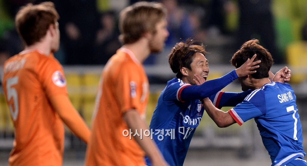 [수원=아시아경제 김현민 기자] 프로축구 수원 삼성이 8일 수원월드컵경기장에서 브리즈번 로어(호주)와 AFC 챔피언스리그 조별리그 G조 4차전을 했다. 후반 수원 서정진이 팀의 두 번째 골을 터뜨리고 환호하고 있다.