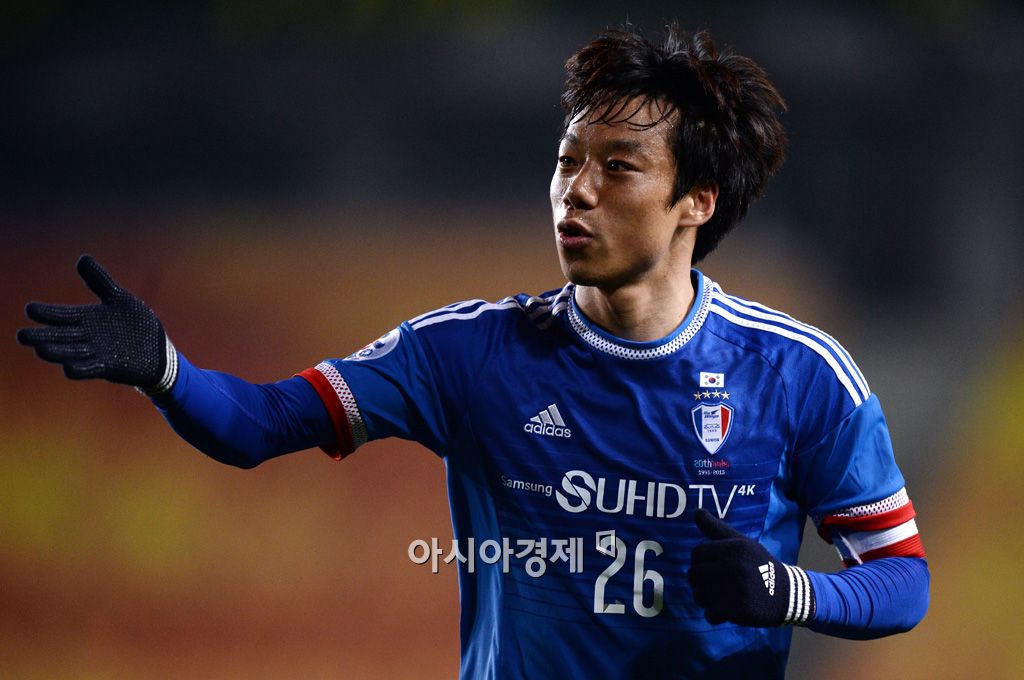 [수원=아시아경제 김현민 기자] 프로축구 수원 삼성이 8일 수원월드컵경기장에서 브리즈번 로어(호주)와 AFC 챔피언스리그 조별리그 G조 4차전을 했다. 후반 수원 염기훈이 코너킥을 위해 이동하며 서포터즈를 향해 손짓하고 있다. 김현민 기자 kimhyun81@asiae.co.kr<ⓒ세계를 보는 창 경제를 보는 눈, 아시아경제(www.asiae.co.kr) 무단전재 배포금지>