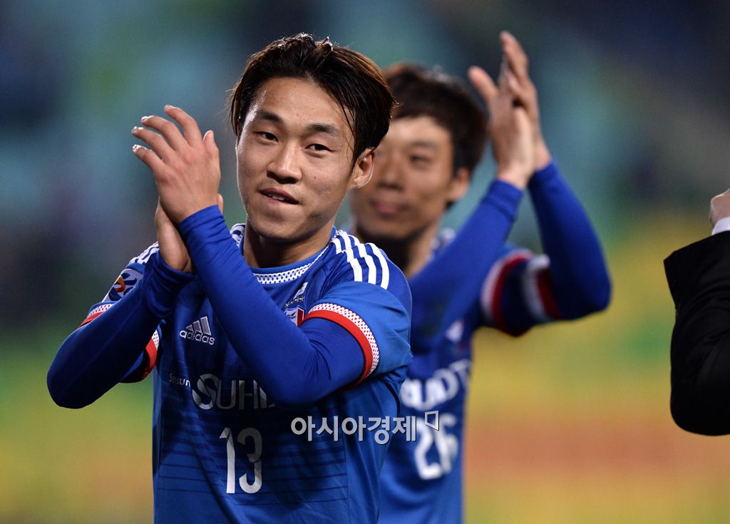 [수원=아시아경제 김현민 기자] 프로축구 수원 삼성이 8일 수원월드컵경기장에서 브리즈번 로어(호주)와 AFC 챔피언스리그 조별리그 G조 4차전을 했다. 3-1로 승리를 거둔 수원 서정진이 서포터즈를 향해 박수를 보내고 있다. 김현민 기자 kimhyun81@asiae.co.kr<ⓒ세계를 보는 창 경제를 보는 눈, 아시아경제(www.asiae.co.kr) 무단전재 배포금지>