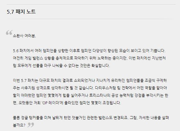 [아시아경제 온라인이슈팀] 리그오브레전드(이하 롤) 서버점검 및 게임 업데이트가 조기 완료됐다. 라이엇게임즈는 당초 9일 오전 6시부터 오후 1시까지 7시간 동안 서버 점검을 진행한다고 했지만 이보다 앞선 오전 8시30분께 업데이트 작업이 모두 완료됐다.이번 롤 점검은 북미 서버와 마찬가지로 5.7 패치 업그레이드로 진행됐다.롤 측은 이날 5.7 패치 업그레이드를 완료하고 홈페이지를 통해 '5.7 패치 노트' 공지사항을 게재했다. '5.7 패치 노트'에 따르면 이번엔 5.6 패치처럼 이용자들에게 선물을 나눠주는 이벤트는 없다. 반면 챔피언들의 밸런스를 상·하향 조정에 중점을 뒀다. '와드 점프 충돌' 버그와 정령 수호자 우디르의 상대 챔피언별 대사 출력 문제가 수정됐다.또한 '오메가 스쿼드 티모', '빛의 베인', '사막의 수호자 제라스', '사막의 수호자 스카너', '사막의 수호자 람머스', '연미복 갈리오' 스킨이 상점에 등장했다.자세한 업데이트 사항은 홈페이지를 통해 확인할 수 있다.온라인이슈팀 issue@asiae.co.kr<ⓒ세계를 보는 창 경제를 보는 눈, 아시아경제(www.asiae.co.kr) 무단전재 배포금지>