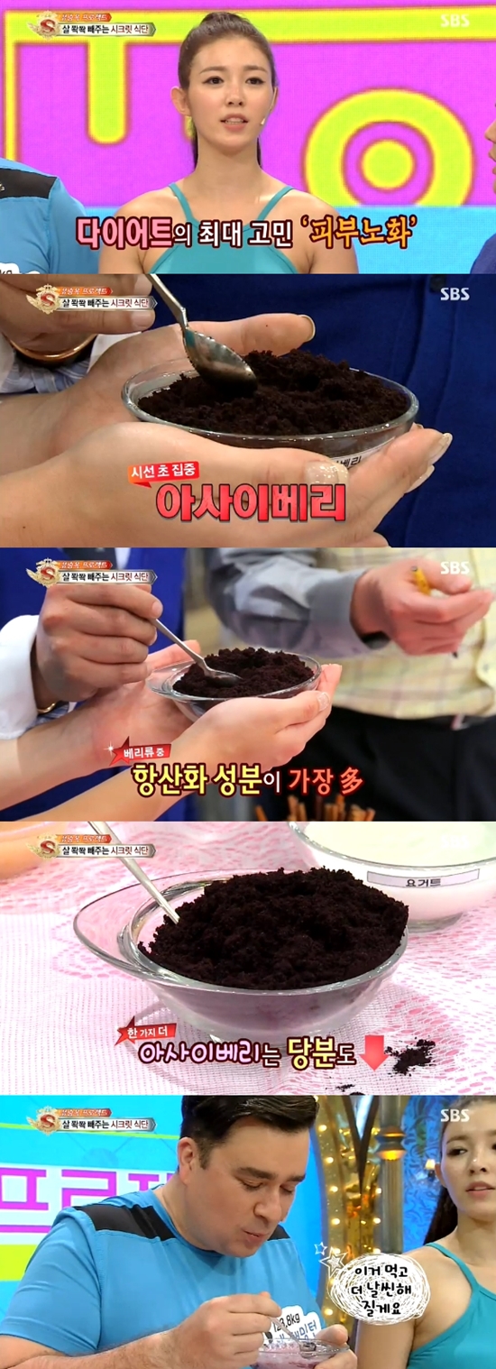 유승옥 추천 다이어트 음식 '아사이베리', 어떤 효능 있나 보니…[아시아경제 온라인이슈팀] 유승옥이 다이어트 푸드로 ‘아사이베리’를 추천해 눈길을 끌고 있다. 11일 방송된 SBS '놀라운 대회 스타킹'에서 유승옥은 믿고 먹는 다이어트 식단을 공개했다.유승옥이 추천한 첫 번째 메뉴는 샐러드다. 유승옥은 게살 샐러드를 비롯해, 닭가슴살 샐러드, 두부 샐러드에 가벼운 드레싱을 곁들여 먹기를 추천했다. 이어 유승옥은 드레싱에 노화방지에 좋은 아사이베리를 곁들여 먹으면 좋다고 조언했다. 유승옥은 “아사이베리에는 항산화 성분이 가장 많다. 다이어트의 최대 고민인 피부 노화를 방지할 수 있다”고 밝혔다.특히 다이어트에 도전 중인 샘 해밍턴이 “이것(아사이베리) 먹고 더 날씬해 질게요”라는 자막과 함께 아사이베리 요거트 먹방을 선보여 스튜디오에 웃음을 자아냈다.온라인이슈팀 issue@asiae.co.kr<ⓒ세계를 보는 창 경제를 보는 눈, 아시아경제(www.asiae.co.kr) 무단전재 배포금지>