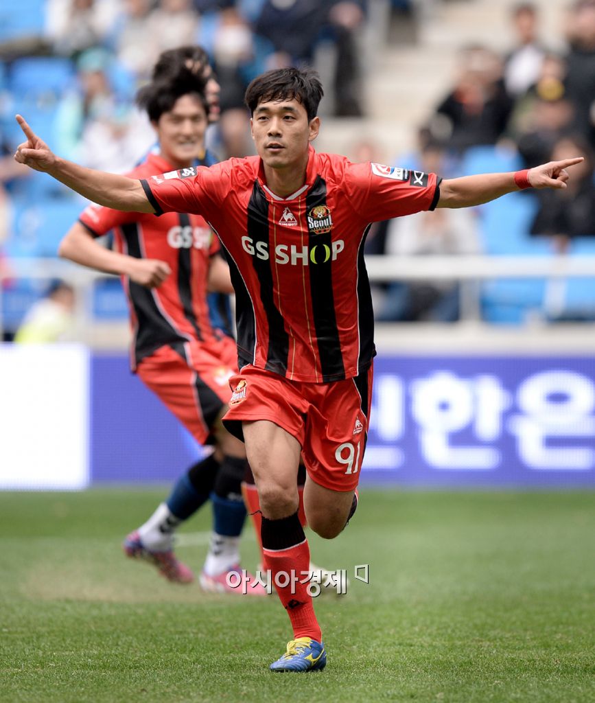 [인천=아시아경제 김현민 기자] 12일 인천축구전용경기장에서 열린 프로축구 'K리그 클래식 2015' 인천 유나이티드와 FC 서울의 경기에서 서울 박주영이 페널티킥 선제골을 성공시키고 환호하고 있다. 김현민 기자 kimhyun81@asiae.co.kr<ⓒ세계를 보는 창 경제를 보는 눈, 아시아경제(www.asiae.co.kr) 무단전재 배포금지>지>