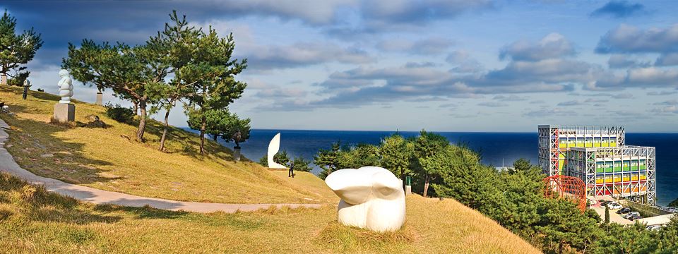 '하슬라아트월드' 12년째 일궈 온 박신정·최옥영 조각가 부부'하슬라'는 삼국시대 옛 '강릉' 이름조각공원·뮤지엄호텔·미술관…자연과 예술의 섞임[강릉 정동진=아시아경제 오진희 기자] 드넓게 펼쳐진 동해 바다. 이곳에도 봄이 왔다. 벚꽃과 개나리, 목련이 복스럽게 피어올랐다. 정동진을 향해 해안도로를 탄 이들의 마음도 절로 설렌다. 드라마 '모래시계'로 잘 알려진 정동진은 과거 한양의 광화문에서 정동쪽에 있는 나루터라 해 붙은 지명이다. 봄나들이 삼아 새벽녘 서서히 떠오르는 붉은 태양을 보기 위해 이곳을 찾는 이들도 많아지고 있다. 그리고 차로 5분도 안 되는 거리에, 놓치기엔 아쉬울만한 대규모 복합문화공간이 있다. 미술과 생태가 어우러진 '하슬라아트월드'(이하 하슬라)다. '하슬라'는 외국말처럼 들리지만, 실은 삼국시대 강릉의 옛 이름이다. '해밝음'이란 뜻이다.지난 11일 강원도 강릉시 정동진리에 있는 하슬라를 찾았다. 하슬라는 너른 산과 바다 사이 언덕에 자리잡았다. 3만3000평 조각공원에는 숲과 들판 등 자연 곳곳과 조화를 이루는 조각작품이 즐비하다. '빌렌도르프의 비너스'를 닮은 조각부터 개구리와 메뚜기, 매미와 같은 곤충을 형상화한 작품, 소똥으로 만든 추상작품까지. 산책로를 따라 걸어 오르며 작품을 발견하는 재미와 함께, 높은 곳에 탁 트인 시야로 들어오는 바다를 내려다보는 기분이 짜릿하다.하슬라의 조각공원이 문을 연 지는 12년이 돼 간다. 공원을 지은 지 6년이 지난 2009년엔 도로와 가장 가까운 곳에 호텔이 생겼다. 알록달록한 박스를 쌓아 올린 형태로 현대적인 디자인이다. 내부는 '뮤지엄호텔'로 불리기에 충분할 만큼 다양한 예술작품들로 꾸몄다. 객실의 침대, 욕조, 테이블부터가 작품이며, 레스토랑, 프런트 등 여러 곳에서도 회화와 사진, 조각, 설치 등 예술작품을 감상할 수 있다. 호텔이 문을 연 이듬해 호텔 내부에 미술관이 들어섰다. 하슬라는 공원과 호텔, 미술관 외에도 노천카페, 생태학습장, 하우스웨딩홀, 예술가들의 레지던스 작업장이 있다. 지난해부턴 산야초 농장도 가동되고 있으며, 올해 별도로 '바이오미술관'이 개관할 예정이다. 많은 공간들이 천장부터 바닥까지 전면 유리창을 벽으로 삼아 동해바다가 훤히 내려다보인다.최옥영 작가의 '우주' 전