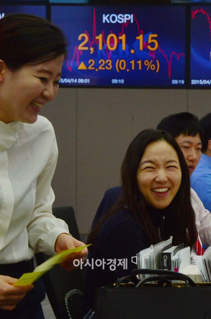 [아시아경제 백소아 기자] 14일 서울 중구 외환은행 본점 딜링룸에서 전광판에 표시된 코스피 지수가 상승곡선을 이어가고 있다. 이날 코스피 지수는 전날보다 2.84p 오른 2101.76p로 출발해 2011년 8월초 이후 3년 9개여월만에 2100선을 탈환했다.백소아 기자 sharp2046@asiae.co.kr<ⓒ세계를 보는 창 경제를 보는 눈, 아시아경제(www.asiae.co.kr) 무단전재 배포금지>