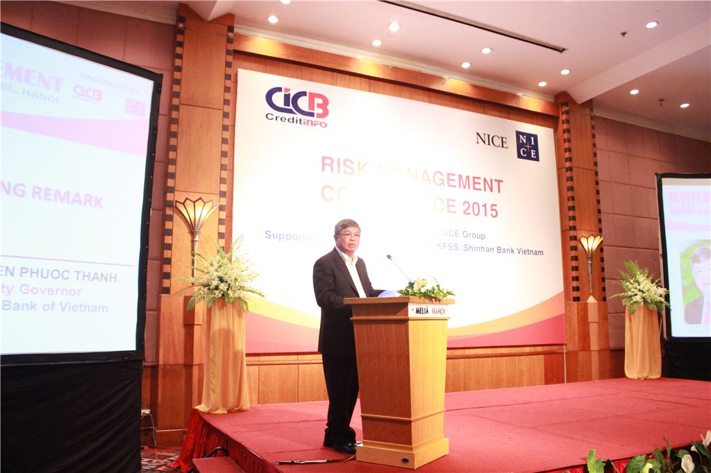 ▲NICE그룹이 14일 베트남 하노이에서 개최한 '2015 베트남 신용위험관리 컨퍼런스'에서 응유엔 푸억 타잉 베트남 중앙은행 부총재가 환영사를 하고 있다.