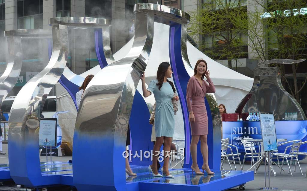 [아시아경제 백소아 기자] 15일 서울 청계광장에서 시민들이 도심 속 오아시스 조형물인 워터풀 수분길을 체험하고 있다.백소아 기자 sharp2046@asiae.co.kr<ⓒ세계를 보는 창 경제를 보는 눈, 아시아경제(www.asiae.co.kr) 무단전재 배포금지>