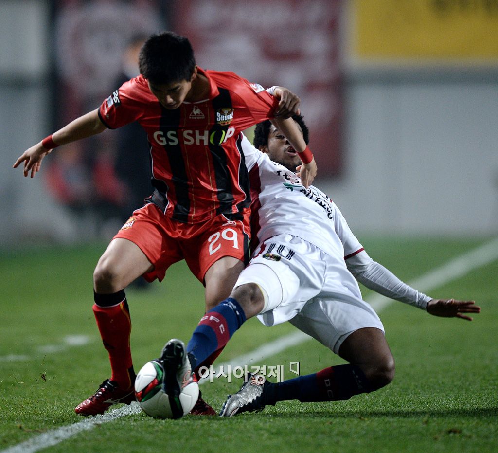 [상암=아시아경제 김현민 기자] 15일 서울월드컵경기장에서 열린 프로축구 'K리그 클래식 2015' FC 서울과 대전 시티즌의 경기에서 서울 이상협이 상대 아드리아노와 공을 다투고 있다. 김현민 기자 kimhyun81@asiae.co.kr<ⓒ세계를 보는 창 경제를 보는 눈, 아시아경제(www.asiae.co.kr) 무단전재 배포금지>지>