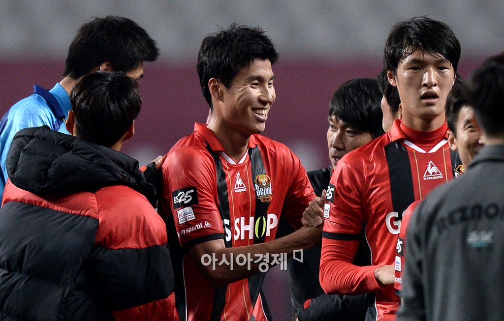 [상암=아시아경제 김현민 기자] 15일 서울월드컵경기장에서 열린 프로축구 'K리그 클래식 2015' FC 서울과 대전 시티즌의 경기에서 1-0 승리를 거둔 서울 김현성이 동료들과 기쁨을 나누고 있다. 김현민 기자 kimhyun81@asiae.co.kr<ⓒ세계를 보는 창 경제를 보는 눈, 아시아경제(www.asiae.co.kr) 무단전재 배포금지>지>