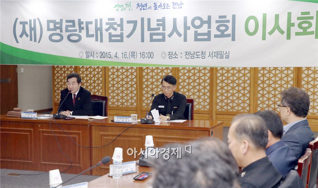 "16일 이사회…명량 리더십 캠프·해전 재현 개선 등 논의" [아시아경제 노해섭 ]전라남도(도지사 이낙연)는 올해 명량대첩축제의 성공적 추진을 위해 16일 (재)명량대첩기념사업회 이사회를 개최해 축제를 본격적으로 준비하기 위해 2건의 심의안건과 4건의 보고안건을 심의 의결했다.이사회에는 이낙연 전라남도지사, 박동우 해군제3함대사령관(공동 이사장)을 비롯해 최민선 목포해양대학교 총장, 유영식 해군본부 정훈공보실장, 김호남 목포상공회의소 회장, 강남경 농협중앙회 전남지역본부장 등이 참석했다.이날 이사회에선 지난해 명량대첩축제의 세입·세출 결산안과 세입·세출 예산안을 심의 의결하고, 지난해 축제 결과와 올해 축제 기본계획에 대한 보고가 있었다.또한 올해 축제를 이끌고 갈 총연출감독 선임안과 명량대첩기념사업회의 선양사업으로 새로 추진할 이순신 명량 리더십 캠프 추진안 보고를 통해 축제 발전 방안과 기념사업회 활성화 방안에 대해서도 심도 있는 논의가 있었다.이낙연 도지사가 16일 오후 도청 서재필실에서 열린 (재)명량대첩기념사업회 이사회에 참석, 당연직 이사들과 인사를 하고 있다.사진제공=전남도