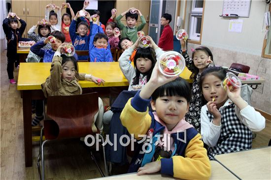 광주 동구는 지역아동센터 아동을 대상으로 주2회 제철과일을 제공하는 한편 과일을 활용한 간식 만들기 체험과 월1회 영양교육을 실시하는 등‘싱싱! 건강과일바구니’프로그램을 운영한다. 사진제공=광주시 동구