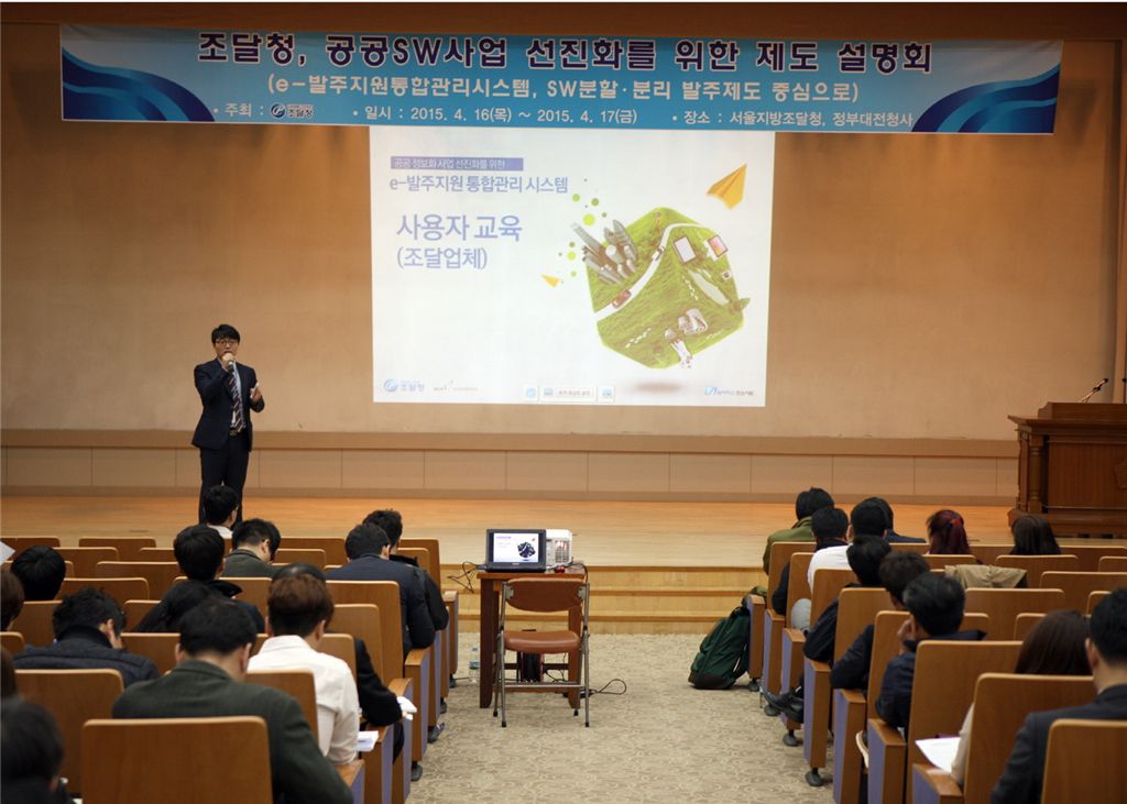 서울지방조달청 대강당에서 열린 '공공 SW사업 선진화를 위한 제도 설명회' 모습