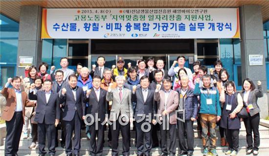 "2015년 지역맞춤형 일자리창출지원사업"[아시아경제 노해섭 ]완도읍 농공단지 해양바이오연구원 대회의실에서 최근 교육생 및 관계자 60여 명이 참석한 가운데 ‘수산물, 황칠·비파 융복합 가공기술 실무교육’개강식이 개최됐다. 이 교육은 완도군과 해양바이오연구원이 고용노동부 공모사업을 통해 완도만의 지역특수성을 살린 맞춤형 일자리창출 지원사업에 선정되어 완도군 거주자(미취업자 창업예정자)를 대상으로 4월 8일부터 6월 25일까지 204시간 과정으로 고용창출을 위한 전문인력 양성을 목표로 운영된다. 이번 교육을 통해서 연구원 내 장비를 활용한 제품개발 생산, 품질관리, 기업현장실습 등 현장에 적용 가능한 실무위주교육을 실시하여 체계적이고 효율적인 인력양성에 초점을 두고 추진할 방침이다. 이영문 완도군 경제산업과장은 “앞으로 지역주민들의 눈높이에 맞추고 수요가 있는 미래지향적인 맞춤형 일자리 사업을 적극 발굴하여 추진하겠다”고 밝혔다.노해섭 기자 nogary@<ⓒ세계를 보는 창 경제를 보는 눈, 아시아경제(www.asiae.co.kr) 무단전재 배포금지>
