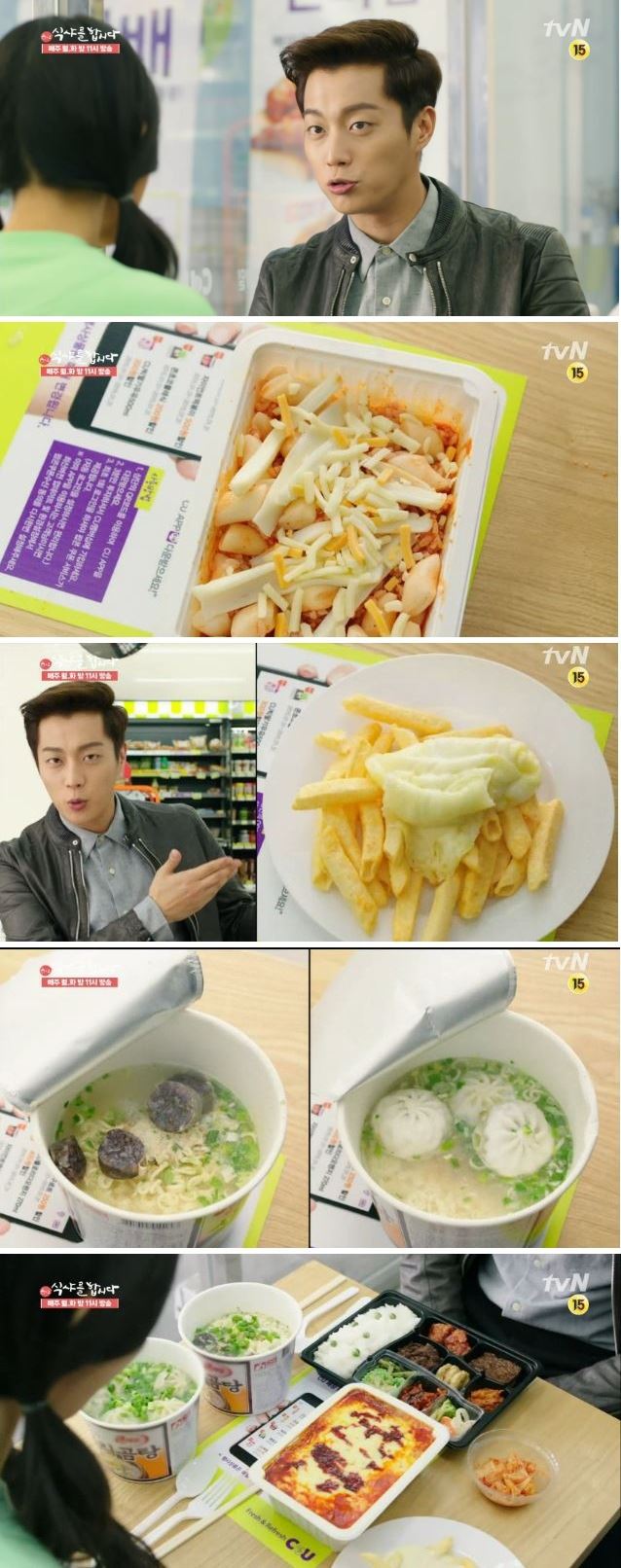 [아시아경제 온라인이슈팀] '식샤를 합시다2' 윤두준이 공개한 '편의점 DIY 음식'이 시청자들의 주목을 받고 있다.21일 오후 방송된 tvN '식샤를 합시다2'에서는 구대영(윤두준 분)과 황혜림(황승언 분)이 편의점에서 함께 저녁식사를 하는 모습이 그려졌다.구대영은 이날 편의점 아르바이트생 황혜림의 일을 도와주고 저녁을 얻어먹게 됐다. 이에 신이 난 구대영은 편의점에 있는 즉석 조리식품을 한가득 골랐다.그는 9첩 반찬 도시락에 감탄한 데 이어 "편의점 음식으로도 레스토랑 부럽지 않은 음식을 만들어 먹을 수 있다"며 즉석 조리식품을 이용한 다양한 메뉴를 선보였다.구대영은 즉석 떡볶이와 치즈, 삼각 김밥을 이용한 치즈 리조또, 감자 맛 과자와 치즈를 이용한 오지치즈후라이 외에 순대국, 만두국, 아포가토 등을 차례로 만들어 보이며 침샘을 자극했다.온라인이슈팀 issue@asiae.co.kr<ⓒ세계를 보는 창 경제를 보는 눈, 아시아경제(www.asiae.co.kr) 무단전재 배포금지>
