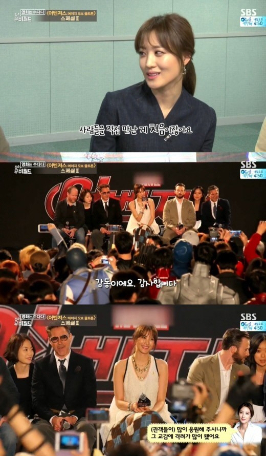 [아시아경제 온라인이슈팀] '어벤져스2' 수현이 다른 배우들의 촬영장 모습을 공개해 눈길을 끌고 있다.25일 방송된 SBS '접속! 무비월드' ‘영화는 수다다’에서는 수현이 출연해 '어벤져스2 : 에이지 오브 울트론'에 대한 이야기를 공개하는 모습이 전파를 탔다. 수현은 최근 '어벤져스2' 한국 레드카펫 프로모션에서 눈물을 흘린 것에 대해 "사실 1년 동안 '어벤져스2'에 대해 아무것도 말할 수 없었다. 그런데 갑자기 많은 팬들의 환호를 받으니 나도 모르게 눈물이 났다"고 당시 눈물에 대해 설명했다. 이어 "로버트 다우니 주니어도 안경 너머로 눈물을 보이더라. 마크 러팔로도 이런 뜨거운 반응이 처음이라고 하더라"고 '어벤져스2' 배우들의 반응도 말했다.한편, 수현은 SBS 라디오 '컬투쇼'에 출연해 "크리스 에반스가 반전 매력이 있다. 점잖을 것 같아도 완전 까불이다. 짓궂은 농담도 많이 하고 개구쟁이다"라고 밝혔다. 이어 로버트 다우니 주니어에 대해서는 "세트장이 내 집인마냥 다닌다. 뭔가 억만장자처럼 자신감이 넘친다. 쉽게 다가가지 못하는 포스가 있다"라고 '어벤져스2' 배우들의 행동을 깜짝 공개하기도 했었다.온라인이슈팀 issue@asiae.co.kr<ⓒ세계를 보는 창 경제를 보는 눈, 아시아경제(www.asiae.co.kr) 무단전재 배포금지>