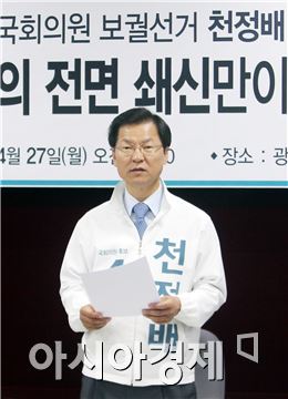 [아시아경제 노해섭 ]광주 서구을 보궐선거 무소속 천정배 후보는 27일 기자회견을 갖고 “무기력하고 나태한 야권을 바꾸는 것이 오는 대선에서 승리하는 지름길”이라며 “당선이 되면 새로운 인재들이 널리 참여해 야권의 체질을 바꾸는 인적 쇄신을 이루고 야권이 비전과 정책을 갖춘 유능한 세력으로 변화시키겠다”고 선언했다.천 후보는 정권교체와 정권재창출의 역사를 설명하면서 "1995년, 김대중 대통령은 무기력한 이기택 민주당을 나와서 저를 포함해 김근태, 정동영, 신기남 등 유능하고 개혁적인 인물들을 대거 참여시키는 쇄신 끝에 사상 최초의 수평적 정권교체를 이뤘고, 2001년에는 이회창 대세론에 주눅 들린 민주당이 패배주의에 빠져있을 때, 저를 비롯한 당내 개혁세력이 일으킨 정풍운동으로 국민참여경선과 노풍을 만들어 승리했다”고 말했다.이어 천 후보는 “지금처럼 당시에도 쇄신에 대한 반대가 컸고, 무조건적인 단결을 외치는 목소리도 많았다”면서 “그러나 쇄신 없는 단결이란 야당에 안주하려는 기득권자들의 논리일 뿐”이라고 일축했다.천 후보는 2012년 대선 패배에 대해서도 “이명박 정권의 실정으로 60%를 넘는 국민이 정권이 바뀌기를 원했지만, 당의 기득권 세력이 변화를 거부했고 그 결과 패배했다”면서 특히 “대선 이전 당은 저에게 당 개혁 작업을 맡겼고, 저는 수많은 당원들과 전문가들과 함께 당 개혁특별위원회를 구성하여 쇄신안을 만들었지만 변화를 두려워한 당권 세력이 쇄신안을 헌신짝처럼 팽개친 결과가 패배였다”고 비판했다.천 후보는 “젊고 유능한 뉴DJ들을 발굴하고 육성해서 내년 총선에서 좁게는 광주에, 넓게는 호남 전역에 출마해 호남 정치를 확 바꾸도록 하겠다”면서 “기득권에 침몰한 고려를 무너뜨리고 조선을 건국한 정도전 등의 신진사대부처럼 그들은 광주를 바꾸고 새로운 대한민국을 세우는 신진사대부가 될 것”이라고 전망했다.이어 천 후보는 “호남의 정치인들은 개혁의 주역이 아니라 타파해야 할 기득권의 상징이 되었고, 호남의 소외와 불평등을 개선시키기는커녕 야권에서조차 호남불가론을 거리낌 없이 이야기하는데도 그들은 제대로 항변조차 못하는 무기력한 존재가 되어버렸다”고 지적하면서, “야권의 개혁을 추동하는 힘의 원천은 호남으로, 김대중 대통령을 승리로 이끌고, 노픙을 점화시킨 호남과 광주의 위대한 선택이 없이는 수평적 정권 교체도, 정권재창출도 없었을 것”이라고 강조했다.마지막으로 천 후보는 “저는 정치에 몸담은 이래로 단 한 번도 기득권에 안주하지 않고, 오직 야권의 쇄신과 변화에 앞장서 왔다”면서 “두 번 정권을 바꿨던 제가 호남정치를 살리고 야권을 쇄신하고 정권교체의 대장정을 시작하겠다”는 포부를 밝혔다. 선거 이틀 전인 이날 천정배 후보의 기자회견은 당선 이후 정권교체를 위해 천 후보가 하고자 하는 일을 밝힌 것으로서, 확실한 개혁 노선으로 야권의 쇄신을 위해 힘쓸 것임을 약속하는 자리였다.노해섭 기자 nogary@<ⓒ세계를 보는 창 경제를 보는 눈, 아시아경제(www.asiae.co.kr) 무단전재 배포금지>