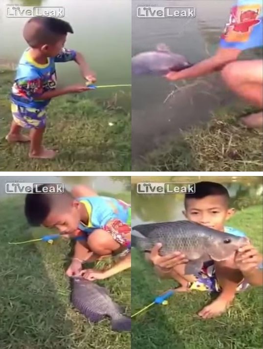 [아시아경제 온라인이슈팀] 태국의 한 소년이 장난감 낚싯대로 자신의 머리 크기보다 큰 대어를 낚아 주목을 받고 있다.지난 2일 영국 동영상 뉴스사이트 '라이브릭'에 올라온 영상에는 최근 태국의 한 호수에서 플라스틱으로 만들어진 장난감 낚싯대를 이용해 낚시를 하는 소년의 모습이 담겼다.영상에서 소년은 자신의 팔보다 짧고 금방 부러질 것 같이 얇은 플라스틱 낚싯대를 열심히 돌린다. '과연 잡힐까' 의문이 생기던 순간 소년이 던진 미끼를 물고기가 물었는지 낚싯대가 둥글게 휘기 시작했다.2분여 동안 작은 체구로 물고기와 밀고 당기기를 반복한 소년은 끝내 물가 근처로 올라온 물고기를 손으로 잡아 끌어올리는 데 성공했다.소년은 자신의 얼굴을 가릴 정도로 큰 대어를 들어 올리며 흡족한 미소를 보였다.네티즌들은 '낚시를 하는 폼이나 물고기를 건지는 솜씨가 보통이 아니다', '물고기 무게를 감당하기 어려웠을텐데 대단하다', '정말 놀랍다' 등의 반응을 보이고 있다. 온라인이슈팀 issue@asiae.co.kr<ⓒ세계를 보는 창 경제를 보는 눈, 아시아경제(www.asiae.co.kr) 무단전재 배포금지>