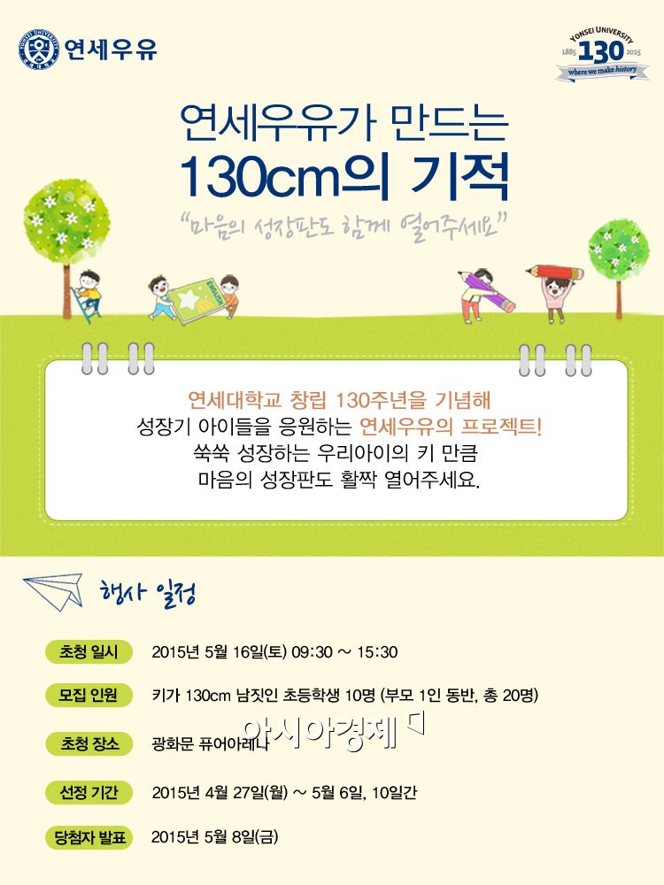 [아시아경제 이광호 기자]연세대학교 연세우유가 연세대학교 창립 130주년을 기념해 오는 16일 '130cm의 기적' 프로모션을 진행한다고 2일 밝혔다.'연세우유가 만드는 130cm의 기적, 마음의 성장판도 함께 열어주세요'라는 슬로건 아래 진행되는 이번 프로모션은 한창 성장해야 하는 아이들의 마음의 성장을 응원하기 위해 기획됐다. 연세우유는 이번 프로모션을 통해 아이의 키, 성적 등의 물리적인 성장도 중요하지만 그 이전에 마음의 성장이 우선되어야 한다는 메시지를 전달할 예정이다.이번 행사는 아이와 부모 클래스로 나뉘어 진행되며, 총 2교시로 운영된다. 아이들은 1교시에서 자신의 미래 꿈을 클레이아트로 직접 표현해 보는 시간을 갖고, 2교시에서는 자신의 감정을 올바로 표현하는 방법을 익힐 수 있는 심리 프로그램을 받게 된다.또 아이의 성장을 위한 부모 클래스가 동시간대에 운영된다. 1교시에서는 긍정적인 부모-자녀 관계를 위한 바람직한 부모의 역할에 대한 강연이 진행되며, 2교시에서는 1교시에서 배운 내용을 토대로 아이와 소통하는 방법을 실습할 수 있는 프로그램을 마련했다.행사는 6일까지 연세우유 블로그(//blog.naver.com/yonsei_life) 내 이벤트 페이지를 통해 신청할 수 있다. 이벤트 페이지를 스크랩해 블로그에 올린 후, 포스팅한 URL과 함께 130cm의 기적 프로모션에 참여해야 하는 이유를 남기면 참여가 완료된다.이광호 기자 kwang@asiae.co.kr<ⓒ세계를 보는 창 경제를 보는 눈, 아시아경제(www.asiae.co.kr) 무단전재 배포금지>