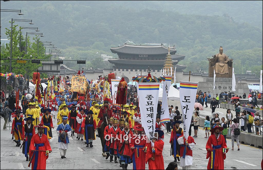 [아시아경제 윤동주 기자] 3일 서울 광화문 일대에서 종묘대제의 시작을 알리는 어가행렬이 재현되고 있다.윤동주 기자 doso7@asiae.co.kr<ⓒ세계를 보는 창 경제를 보는 눈, 아시아경제(www.asiae.co.kr) 무단전재 배포금지>