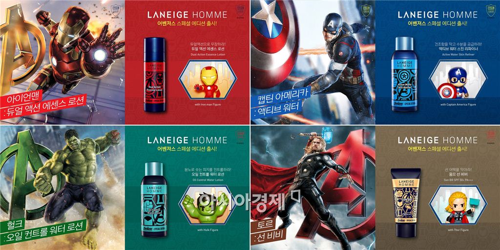 [아시아경제 김현정 기자] 남성 그루밍 브랜드 라네즈옴므는 마블 어벤져스 히어로 아이언맨, 캡틴 아메리카, 헐크, 토르의 디자인을 적용한 라네즈옴므 어벤져스 스페셜 에디션을 5월 한정 출시한다. 특별하게 선보이는 라네즈옴므 어벤져스 스페셜 에디션은 ‘어벤져스 히어로들의 피부 관리법’을 주제로 각 캐릭터의 이미지와 디자인을 라네즈옴므의 대표 제품에 적용하여 총 9종으로 출시되며, 제품 구매 시 각 캐릭터의 피규어를 증정한다. 피부톤과 탄탄한 피부를 동시에 해결하는 라네즈옴므 듀얼 액션 에센스 로션은 최첨단 과학기술이 집적된 하이테크 수트로 상징되는 아이언맨의 디자인이 적용된다. 한편, 5월 한정 출시되는 라네즈옴므 어벤져스 스페셜 에디션은 전국 아리따움 매장 및 일부 롯데 백화점 라네즈 매장, 라네즈 플래그십 스토어(명동점, 이대점, 코엑스몰점)와 라네즈 공식 브랜드 사이트에서 만나볼 수 있다.김현정 기자 alphag@asiae.co.kr<ⓒ세계를 보는 창 경제를 보는 눈, 아시아경제(www.asiae.co.kr) 무단전재 배포금지>