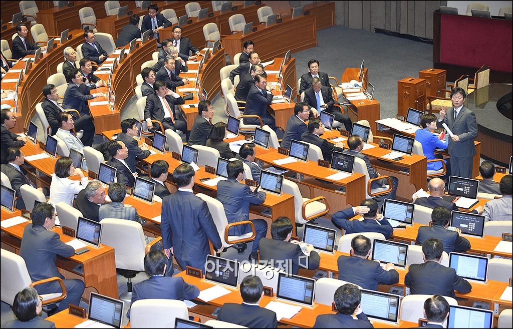 [아시아경제 윤동주 기자] 유승민 새누리당 원내대표가 6일 국회 본회의장에서 박상옥 대법관 임명동의안 처리와 관련해 의원들에게 이야기를 하고 있다.윤동주 기자 doso7@asiae.co.kr<ⓒ세계를 보는 창 경제를 보는 눈, 아시아경제(www.asiae.co.kr) 무단전재 배포금지>