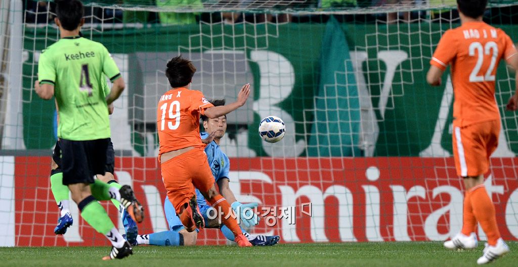 [전주=아시아경제 김현민 기자] 프로축구 전북 현대가 6일 전주월드컵경기장에서 산둥 루넝(중국)와 AFC 챔피언스리그 조별리그 최종전을 치렀다. 전북 권순태 골키퍼가 상대 공격수의 슛을 막아내고 있다. 김현민 기자 kimhyun81@asiae.co.kr<ⓒ세계를 보는 창 경제를 보는 눈, 아시아경제(www.asiae.co.kr) 무단전재 배포금지>