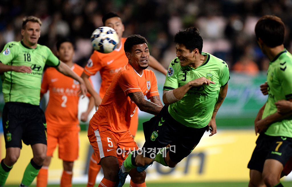 [전주=아시아경제 김현민 기자] 프로축구 전북 현대가 6일 전주월드컵경기장에서 산둥 루넝(중국)와 AFC 챔피언스리그 조별리그 최종전을 치렀다. 전북 김형일이 후반 헤딩 추가골을 성공시키고 있다. 김현민 기자 kimhyun81@asiae.co.kr<ⓒ세계를 보는 창 경제를 보는 눈, 아시아경제(www.asiae.co.kr) 무단전재 배포금지>