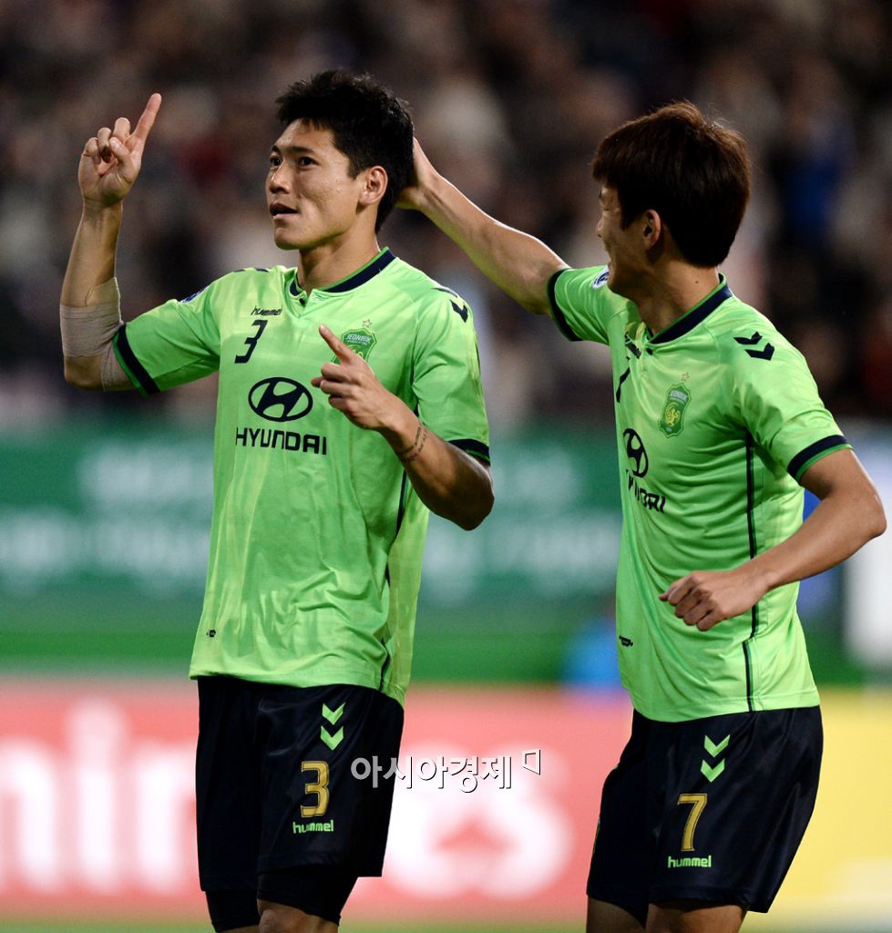 [전주=아시아경제 김현민 기자] 프로축구 전북 현대가 6일 전주월드컵경기장에서 산둥 루넝(중국)와 AFC 챔피언스리그 조별리그 최종전을 치렀다. 전북 김형일이 후반 헤딩 추가골을 성공시키고 동료들과 기뻐하고 있다. 김현민 기자 kimhyun81@asiae.co.kr<ⓒ세계를 보는 창 경제를 보는 눈, 아시아경제(www.asiae.co.kr) 무단전재 배포금지>