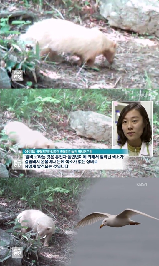 알비노 동물 발견. 사진=KBS1 뉴스화면 캡처