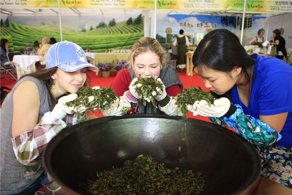 [외국인 방문객들이 '신이 내린 최고의 선물'이라는 보성녹차의 향을 음미하고 있다. 22일부터 26일까지 열릴 다향대축제 추진위원회는 오감만족의 각종 프로그램을 마련해놓고 방문객들을 기다리고 있다.]