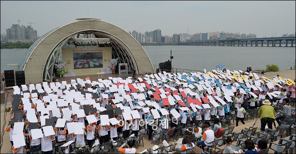 [아시아경제 윤동주 기자] CJ도너스캠프 창립10주년을 맞아 17일 서울 여의도 물빛무대에서 공부방 어린이와 가족, 교사 800여명을 초청해 꿈을 응원하기 위한 카드섹션 퍼포먼스를 갖고 있다. CJ그룹은 CJ도너스캠프를 통해 2005년부터 10년간 교육 후원을 통해 청소년들이 꿈을 끼워 건강한 사회인으로 성장하도록 지원하고 있다.윤동주 기자 doso7@asiae.co.kr<ⓒ세계를 보는 창 경제를 보는 눈, 아시아경제(www.asiae.co.kr) 무단전재 배포금지>
