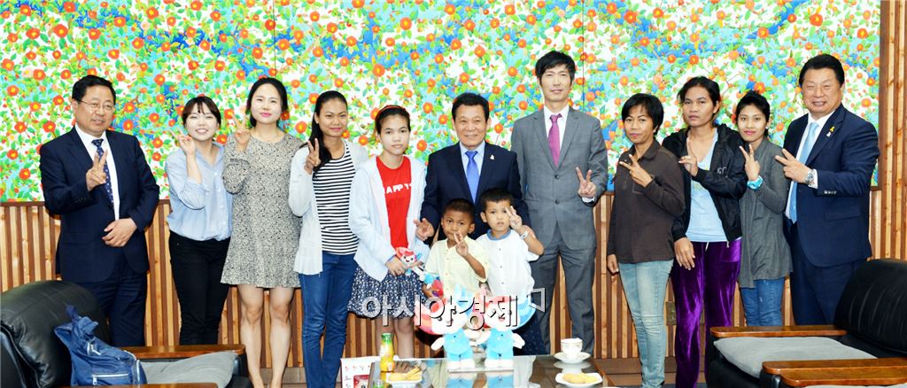 윤장현 광주광역시장은 19일 오후 시층 3층 접견실에서 조선대병원 초청으로 광주에서 치료받은 캄보디아인 환자 3명을 만나 안부를 묻고 격려했다. 이들은 캄보디아에서 의료봉사활동을 펼치고 있는 ‘광주진료소’와의 인연으로 조선대병원에서 무료 수술을 받고 회복돼 20일 고국으로 돌아갈 예정이다.<br /> <br />