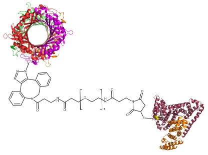 ▲알부민 단백질의 요산분해효소 결합 형태.[사진제공=한국연구재단]<br />