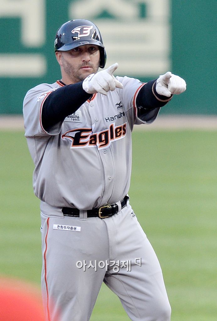 [인천=아시아경제 김현민 기자] 2015 KBO리그 한화 이글스와 SK 와이번스의 경기가 21일 문학야구장에서 열렸다. 1회초 1사 1,3루에서 한화 폭스가 추가 2타점 2루타를 치고 덕아웃을 향해 세리머니하고 있다. 김현민 기자 kimhyun81@asiae.co.kr<ⓒ세계를 보는 창 경제를 보는 눈, 아시아경제(www.asiae.co.kr) 무단전재 배포금지>