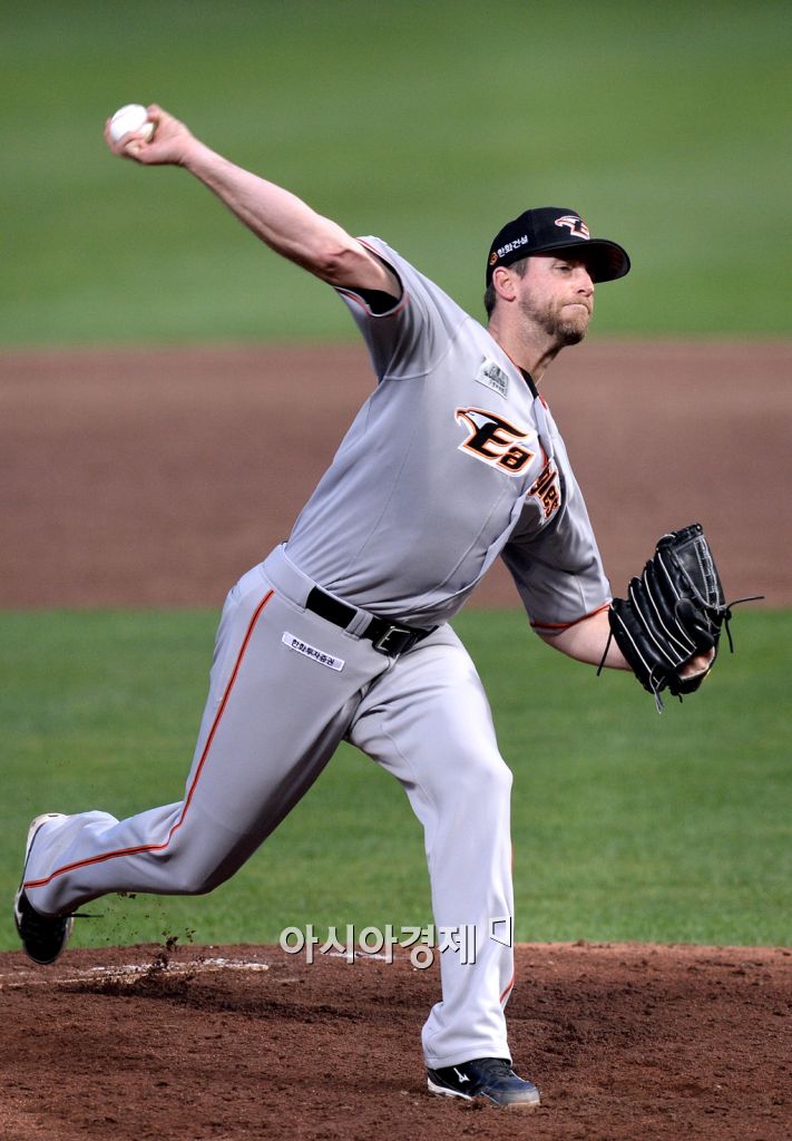 [인천=아시아경제 김현민 기자] 2015 KBO리그 한화 이글스와 SK 와이번스의 경기가 21일 문학야구장에서 열렸다. 한화 선발투수 탈보트가 역투하고 있다. 김현민 기자 kimhyun81@asiae.co.kr<ⓒ세계를 보는 창 경제를 보는 눈, 아시아경제(www.asiae.co.kr) 무단전재 배포금지>