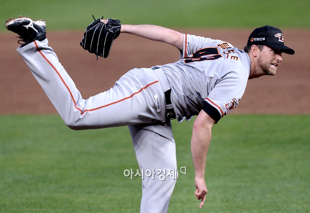 [인천=아시아경제 김현민 기자] 2015 KBO리그 한화 이글스와 SK 와이번스의 경기가 21일 문학야구장에서 열렸다. 한화 선발투수 탈보트가 역투하고 있다. 김현민 기자 kimhyun81@asiae.co.kr<ⓒ세계를 보는 창 경제를 보는 눈, 아시아경제(www.asiae.co.kr) 무단전재 배포금지>