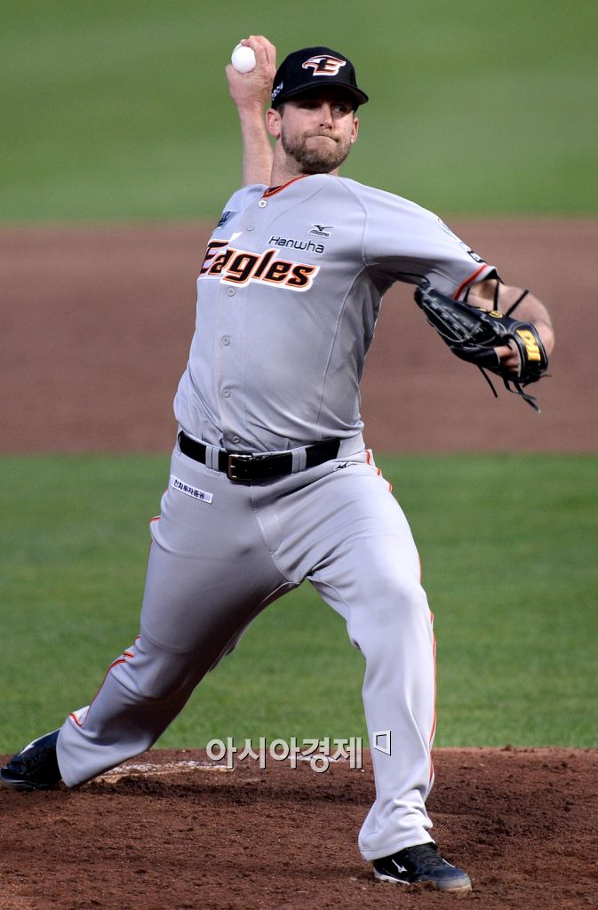 [인천=아시아경제 김현민 기자] 2015 KBO리그 한화 이글스와 SK 와이번스의 경기가 21일 문학야구장에서 열렸다. 한화 선발투수 탈보트가 역투하고 있다. 김현민 기자 kimhyun81@asiae.co.kr<ⓒ세계를 보는 창 경제를 보는 눈, 아시아경제(www.asiae.co.kr) 무단전재 배포금지>