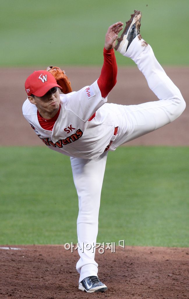 [인천=아시아경제 김현민 기자] 2015 KBO리그 한화 이글스와 SK 와이번스의 경기가 21일 문학야구장에서 열렸다. SK 선발투수 고효준이 역투하고 있다. 김현민 기자 kimhyun81@asiae.co.kr<ⓒ세계를 보는 창 경제를 보는 눈, 아시아경제(www.asiae.co.kr) 무단전재 배포금지>