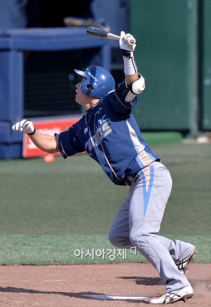 [목동=아시아경제 김현민 기자] 2015 KBO리그 NC 다이노스와 넥센 히어로즈의 경기가 24일 목동야구장에서 열렸다. 5회초 2사 1,3루에서 NC 손시헌이 역전 1타점 우익수 희생플라이를 치고 있다. 김현민 기자 kimhyun81@asiae.co.kr<ⓒ세계를 보는 창 경제를 보는 눈, 아시아경제(www.asiae.co.kr) 무단전재 배포금지>