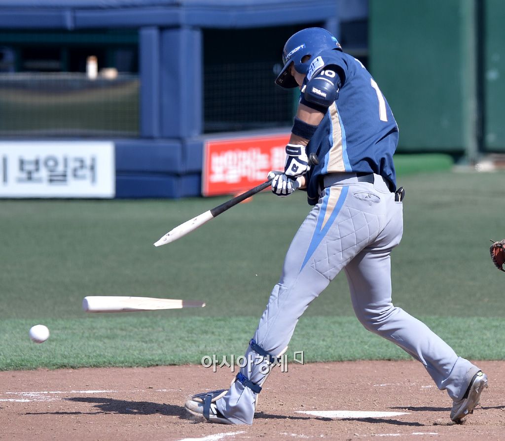 [목동=아시아경제 김현민 기자] 2015 KBO리그 NC 다이노스와 넥센 히어로즈의 경기가 24일 목동야구장에서 열렸다. 5회초 무사 1,2루에서 NC 지석훈이 1루수 앞 땅볼을 치고 있다. 김현민 기자 kimhyun81@asiae.co.kr<ⓒ세계를 보는 창 경제를 보는 눈, 아시아경제(www.asiae.co.kr) 무단전재 배포금지>