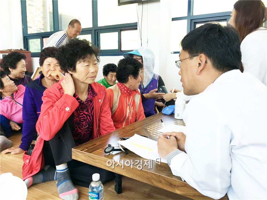완도군 무의도서 주민들이 의사에게 진찰을 받고있다.